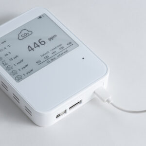 Connected AirWits CO2 Plus, similar to the original AirWits CO2 device, is a Carbon Dioxide (CO2), temperature, and humidity monitoring device with 3 colour dynamic E-ink displays for real-time and accurate indoor air quality monitoring with little to none lifetime costs.
